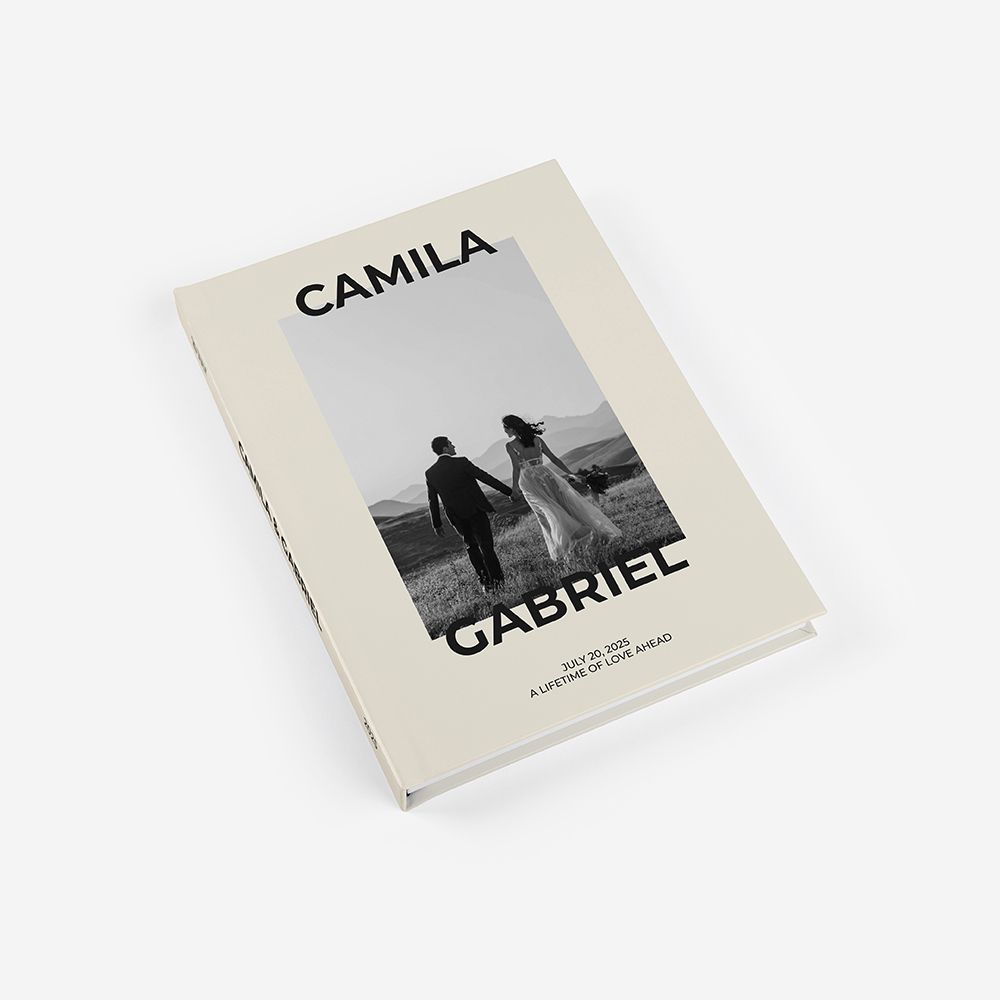 A capa rígida em cartão duro oferece proteção adicional e um acabamento elegante ao teu álbum.